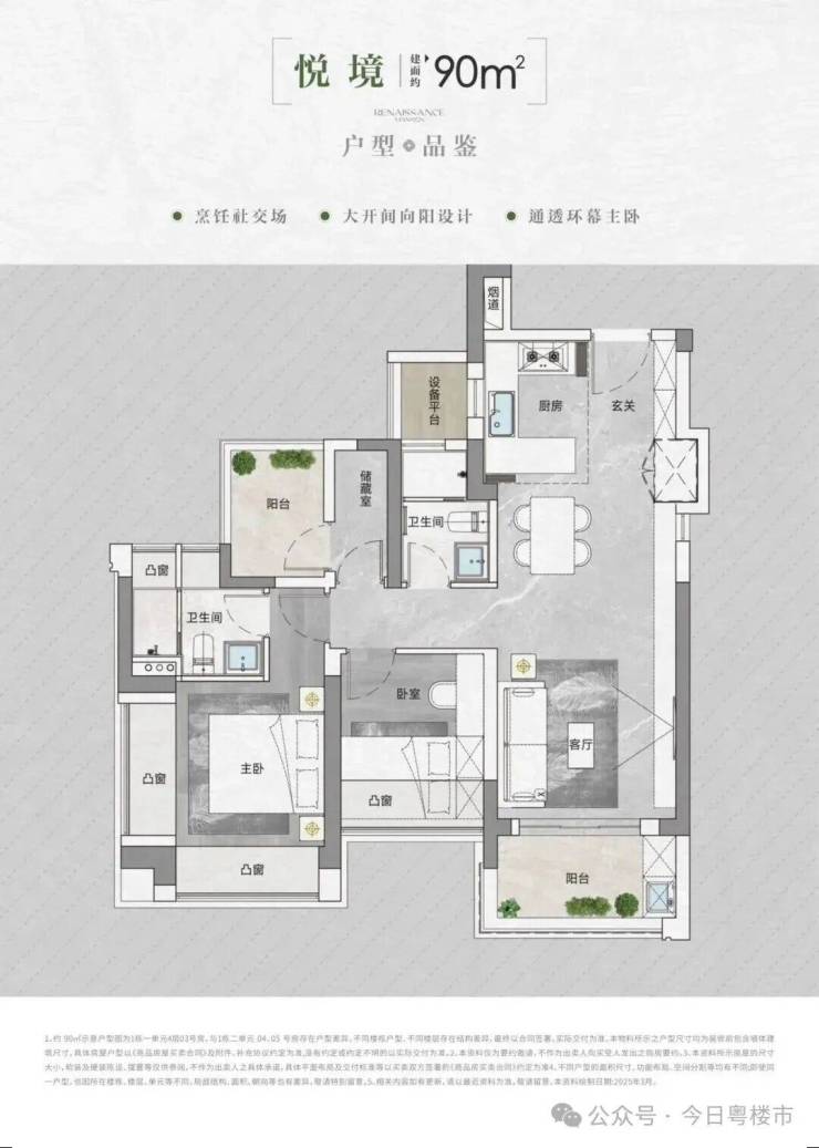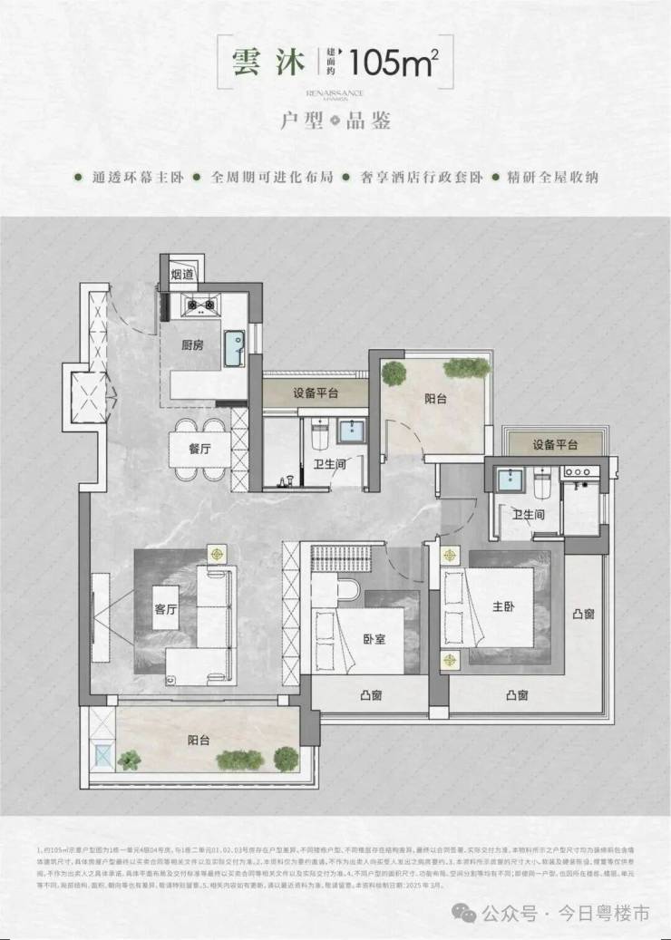 『中海云启源境家园』是新规纯居新宅盘,包含建面约90-95-105-143㎡三至四房,户型结构方正、功能间配比&配比合理,拥有约96%超高使用率。值得注意的是,它在业内享有“小玖序”美誉,所以功能间配比不在于多,而是更注重空间尺度及舒适性,整体空间感优于市面同类型项目。