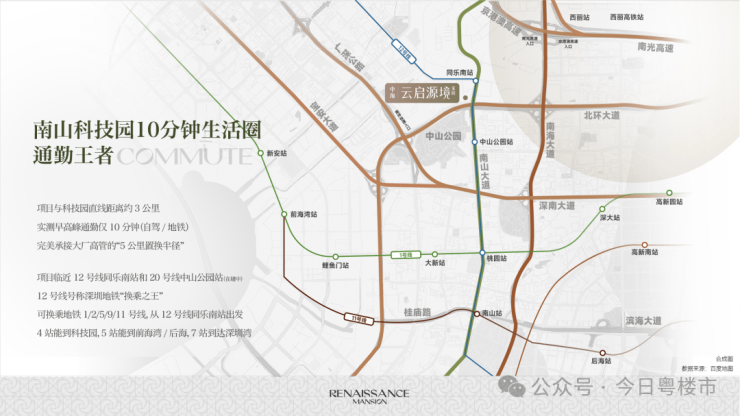 『中海云启源境家园』处在科技园10分钟通勤圈,深圳湾&前海湾20分钟生活圈,4站科技园,5站达前海湾&后海总部基地。