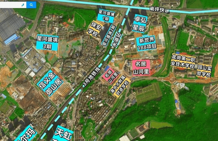 名居山河里,位于龙岗区园山街道3号地铁线永湖站东南侧150米,地处龙岗黄金三角地带,北邻大运新城,东侧是阿波罗未来产业城,西南侧是横岗中心片区。