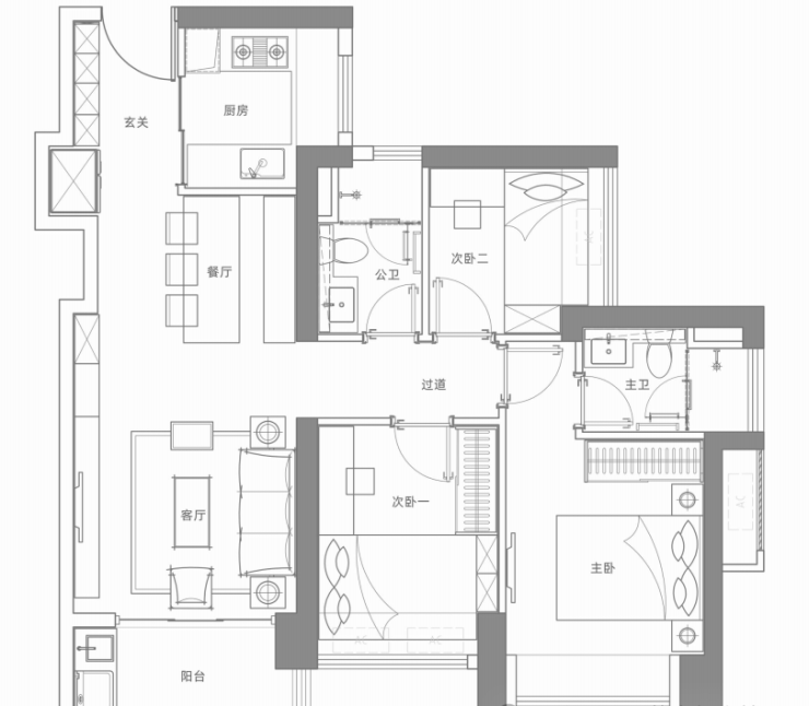 99-102㎡的3房2厅2卫,3栋02户型,设计的是竖厅南北通透格局,客厅3.4米开间,四开间朝南,全屋飘窗,3个卧室分别做到了主卧14.82㎡/次卧10.78㎡/次卧7.44㎡(套内面积,包含墙体),U型厨房,得房率:73.04%(不含赠送),阳台1.6米进深,主朝西南向。套内面积72.82㎡+赠送面积10.19㎡=实得83.01㎡,加上赠送后得房率约83.26%。