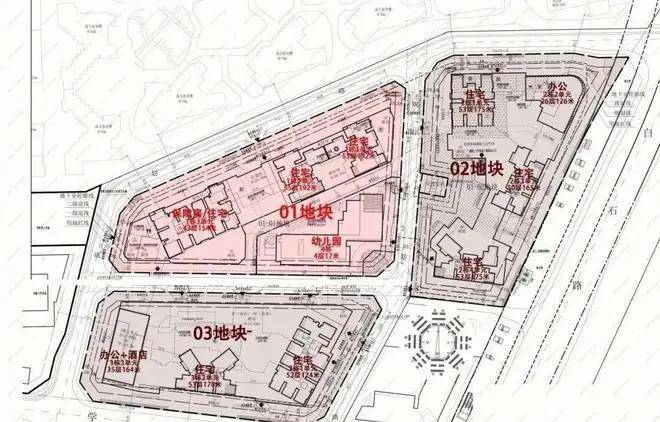 01地块总规划1038套,其中保障房612套、回迁179套、可售商品房247套。容积率9.28,梯户比,车位比为1:0.83。