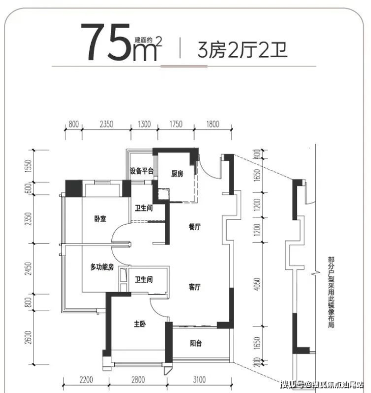 ● 75平3房2厅2卫:真正的同等面积多一间房,还多一间卫生间!
