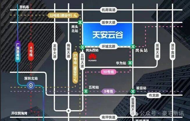 作为坂田北最大体量旧改项目,天安云谷位于坂田街道冲之大道和坂李大道的交汇处,毗邻地铁22号线岗头北站(建设中)。项目占地面积约13.14万㎡,由8个地块组成,建面约128万㎡,集产业、办公、居住、商业等于一体。其中,三期是天安云谷首个包含住宅的项目,建成后将有21栋住宅+2栋酒店+2栋公寓办公,预计提供住宅5886套,保障房640套。