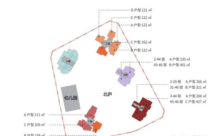 1栋B座:148米,46层,共84户,朝南为主,三梯两户,约235平,401平(顶复)