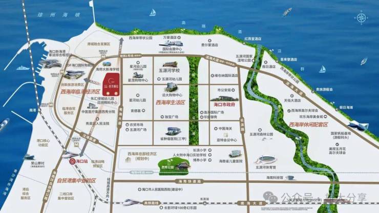 1公里内享受自贸免税高端配套,低密生活居住区,亲海不近海,亲免税不近免税的静谧生活;2公里享受区级生活配套,学校,医院及政府配套均可便捷享受;5公里享受政策红利的文娱配套,紧跟热点潮流,适当的距离享受文娱生活。