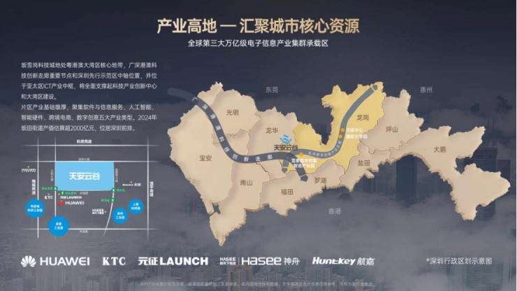 三大科创板块交汇:在这片约28.51平方公里的土地上,汇聚了广深港创新走廊、梅观创新产业走廊以及坂雪岗科技城三大科创高地。