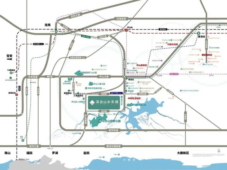 山水东城坐落于坪山区碧岭街道锦龙大道和振碧路交汇处西南角,归属锦龙片区南端,兼具自然生态与优质配套双重优势。