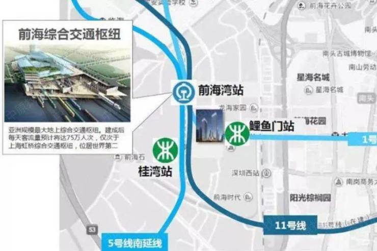 轨: 1号线(鲤鱼门站、前海湾站)、5号线(前海湾站、桂湾站在建)、11号线(前海湾站)