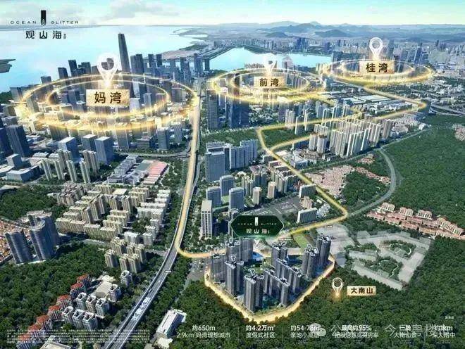 观山海家园项目名为【远洋·观山海家园】,位于兴海大道与沿山交汇处东南侧,大南山脚下,距离5号线“荔湾站”约650米。地处当今深圳最具发展潜力的前海合作区。项目由远洋集团旗下的深圳市远荔实业有限公司开发建设,总占地面积约4.24万平方米,总建筑面积约16.3万平方米,容积率仅为2.65,绿化率高达30.85%。