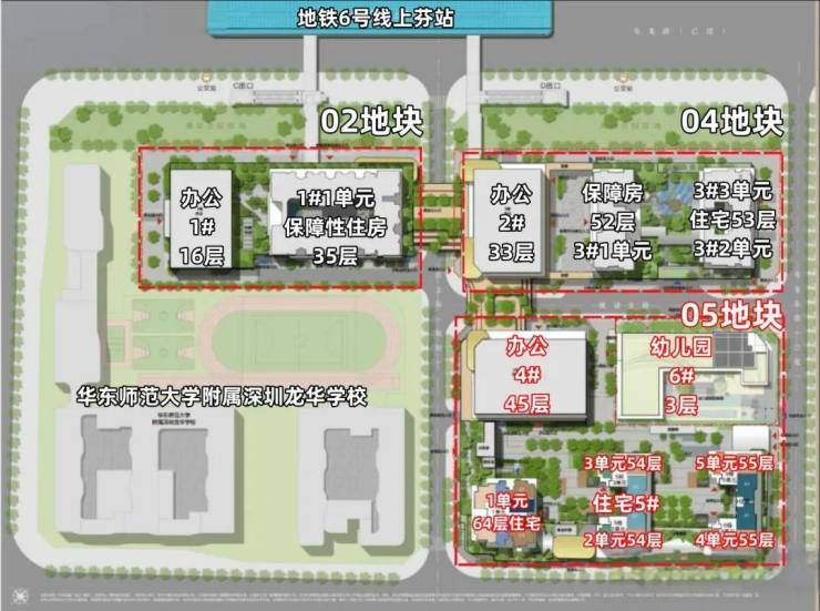 项目由4栋45F超高层住宅、3栋40F、30F写字楼、1栋45F保障房、1栋3F幼儿园以及一所九年制学校组成,未来将建设成为集住宅、办公商业为一体近40万㎡的TOD城市商住综合体项目。