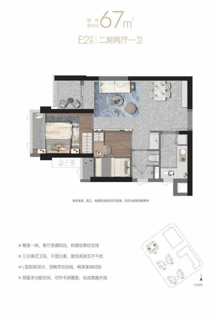 E2户型67㎡二房两厅一卫