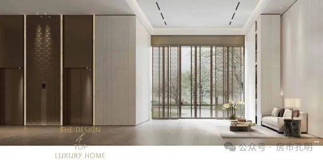 对标深圳核心区域一线豪宅设计理念,由设计过深圳华润悦府、深圳华润润府、深圳万科臻系高端项目的“诗意空间”设计团队担纲本项目的公共空间设计,在用材用料、审美艺术等方面,参照南山、前海的一线豪宅;入户大堂均设置会客区,满足社区入户的自然社交功能,空间布局充分考虑社交功能与迎接宾客的用户需求,在保留阔绰的大堂空间的基础之上满足客户大堂会客的第一重礼仪;打造轻奢电梯厅作为入户前的一道风景,给予业主全方位的荣耀体验,呈现非凡礼仪序列感,造就无与伦比的居住体验,鼎成生活至高礼遇。