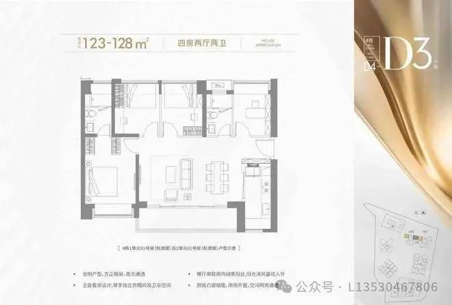 123平-128平的4房2卫