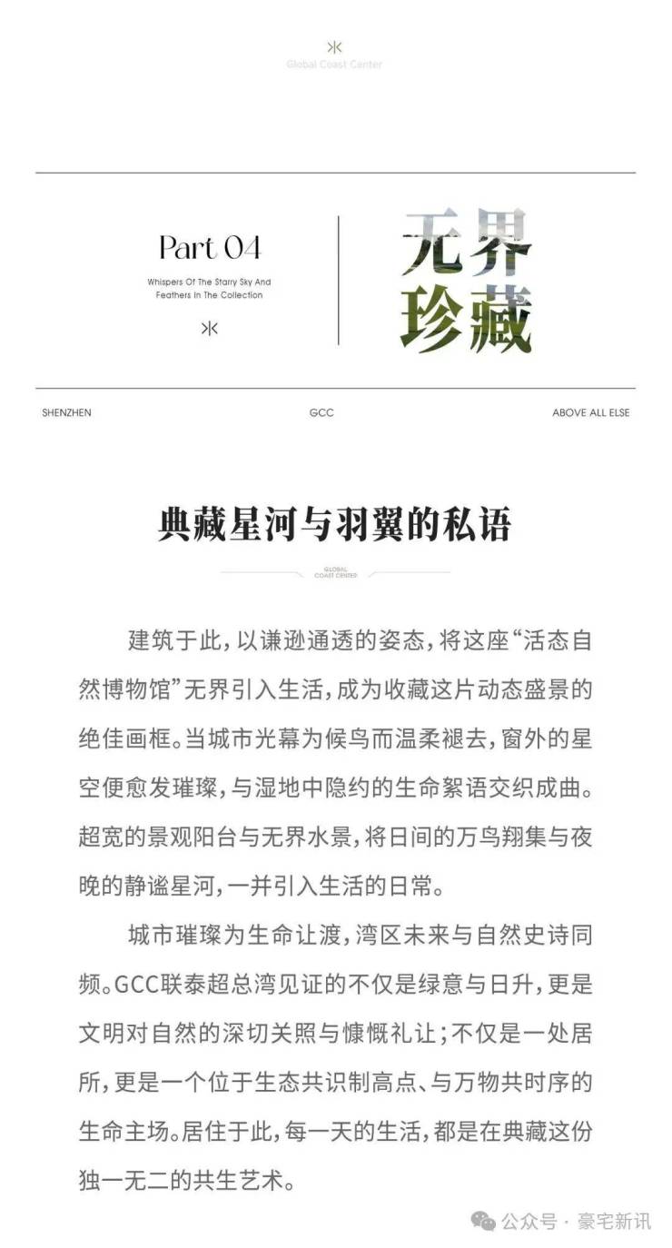 在深超总这个“国际大师建筑博物馆”里,GCC联泰超总湾打造的是一张比肩世界顶级豪宅的城市新名片,同时也将成为深圳湾豪宅史上又一跨时代的现象级代表作。