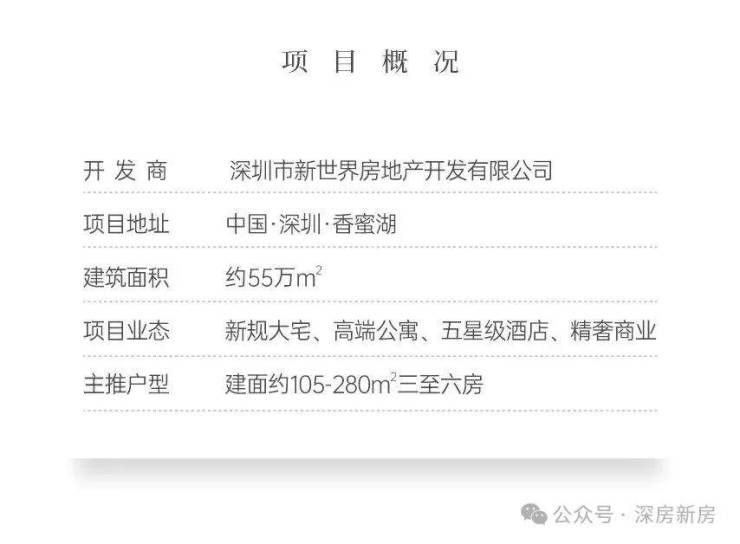 项目由深圳新世界集团开发,在本地口碑较好,有着丰富的开发经验。开发商全称为深圳市新世界集团有限公司,成立于1993年,位于广东省深圳市,是一家以地产开发为龙头,集资产管理 、酒店管理 、物业服务等于一体的大型多元化城市综合运营商。