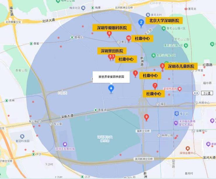 在医疗配套方面,距离项目2公里范围内有3家社康医院、1家三甲综合性医院——北京大学深圳医院,以及1家三甲儿童专科医院——深圳市儿童医院,医疗资源非常强大,为业主健康保驾护航。