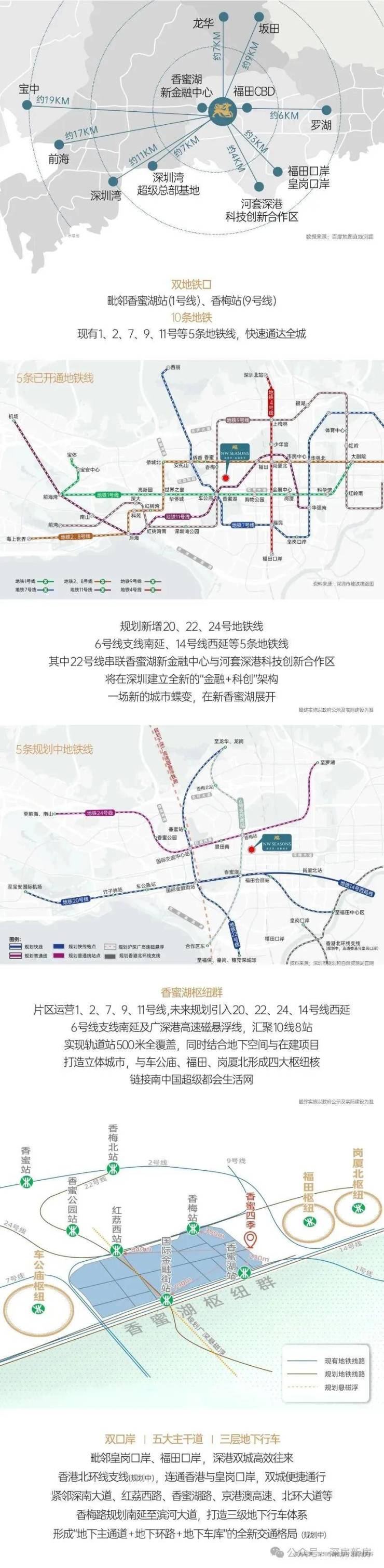 产业升级,意味着交通配套也将进一步升级。香蜜湖金融区将新增2条地铁线(在建中的地铁22号及规划中的24号线),未来3条地铁汇聚于此,可快速连通各区。