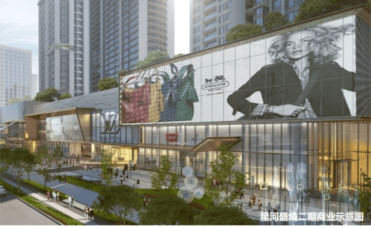 「星河盛境」家门口有超13万㎡商业(星河盛境约4.4万㎡,卓弘星辰约3.6万㎡(在建)、星河智荟约2万㎡、名居山河里约3万㎡(在建))。