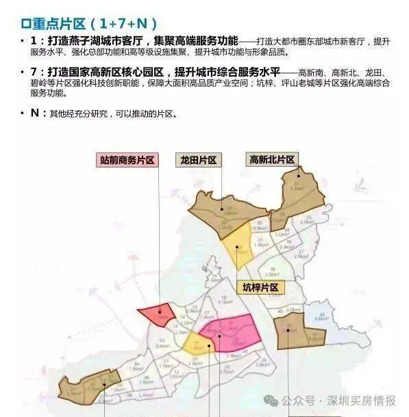 规划还提出建设宜居宜业的高品质中心城区,重点推进燕子湖、坪山老城、碧岭、高新南、高新北等重点片区城市更新和土地整备项目实施,加快形成“1+7+N”格局体系。