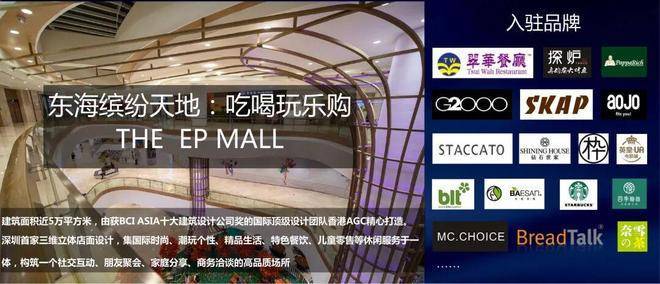自带5万平的东海缤纷天地购物中心,约 36 家中高端餐饮,便捷员工、高管工作、接待用餐