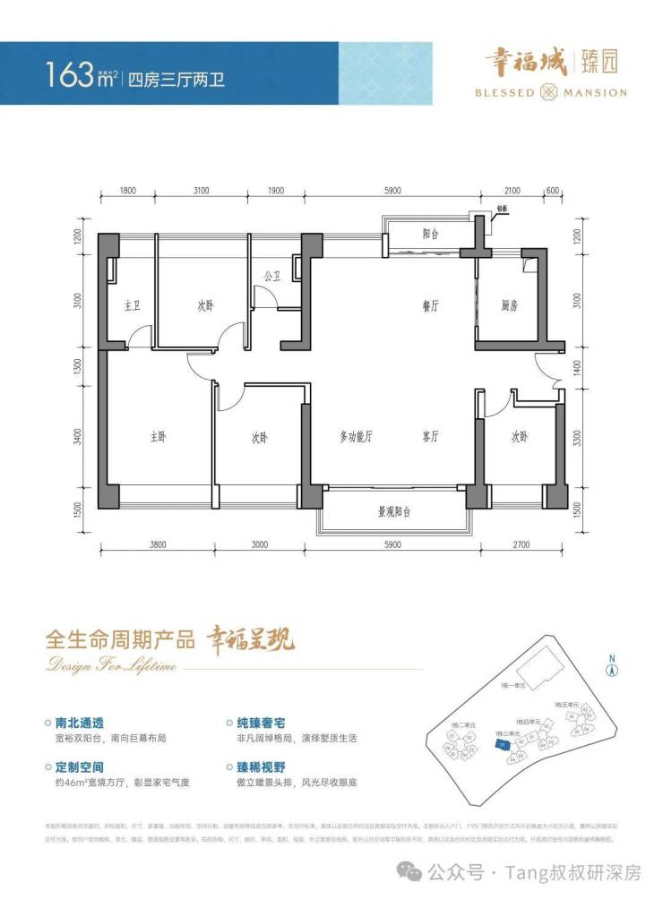 🈶142-163㎡,5房2厅2卫,折后参考总价区间为900-1300万