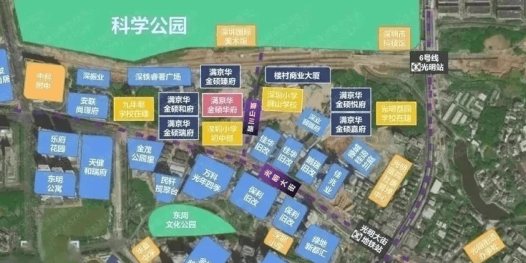 满京华金硕,前身为光明狮山利益统筹项目,由满京华集团全盘操刀,涵盖有10块用地,总占地面积约10.9万㎡,总建筑面积约32.38万㎡,其中住宅用地有7块,返还用地1块,公共绿化用地2块,住宅用地有:满京华金硕和府,满京华金硕瑞府,满京华金硕臻府,满京华金硕华府,满京华金硕悦府,满京华金硕嘉府。