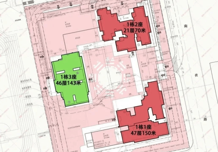 根据规划,项目占地面积约9006.52㎡,总建面约8.8万㎡,规划建设3栋高层住宅,其中2栋21-47层商品房住宅、1 栋 46层保障房,总户数708户,普通商品房298户,保障性住房410户。