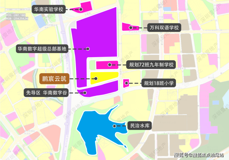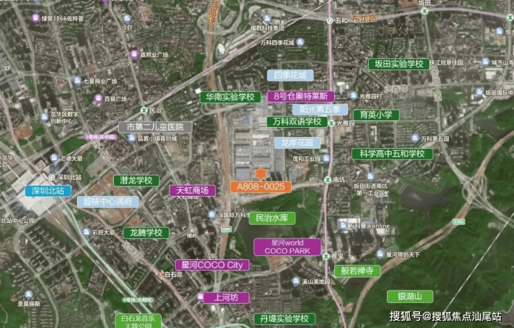 项目距离地铁10号线南坑站约700米,周边有华南实验学校,8号仓奥特莱斯、星河cocopark等商业综合体