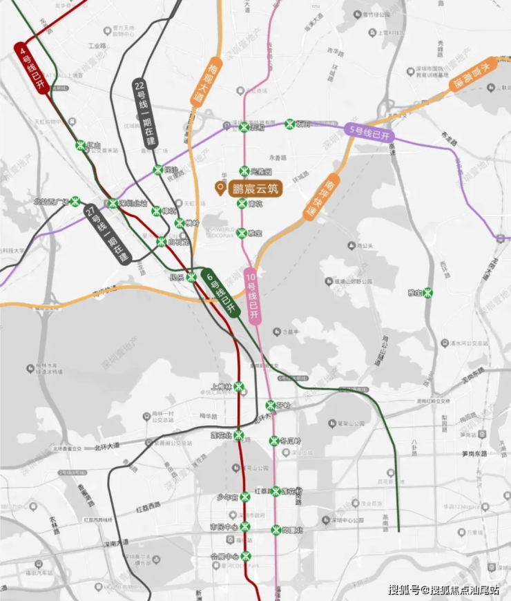 这几个图展示的很清楚,地铁10号线南坑站离项目只有小几百米,四五个站就到福田中心区,地铁十几分钟的功夫,且这条线比4号线还是友好一些,不会那么挤。