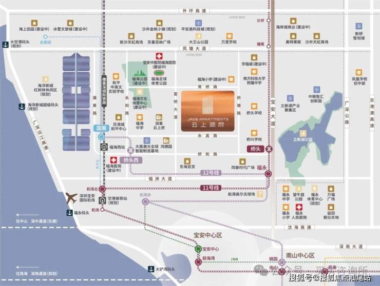 项目近邻桥头地铁站,坐上11号线,5站宝中、7站南山,轨道快线让工作和生活随意转换。