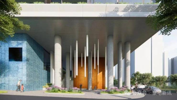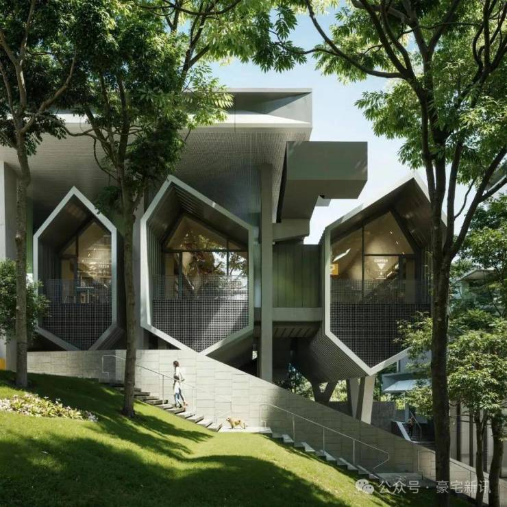 两个不同的会所,一静一动,容纳了健身游泳、图书阅览、聚会活动等不同的功能。双会所与架空层内丰富的社区商业共同构成城市生活型社区。