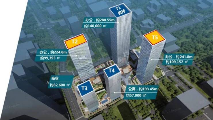 前海华润金融中心总建筑面积约34万平米,规划有3栋国际甲级写字楼(T1、T2、 T5),其中T5建筑面积约109152平方米,建筑高度约249.4米,共53层,其中地下4层,地上包括裙楼3层为商业,6-53层为写字楼,将引进国际金融及现代服务等行业的企业总部。