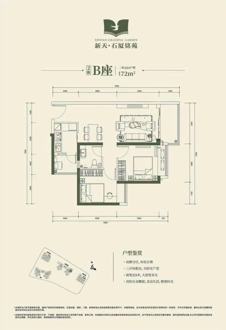 2房2厅1卫72㎡