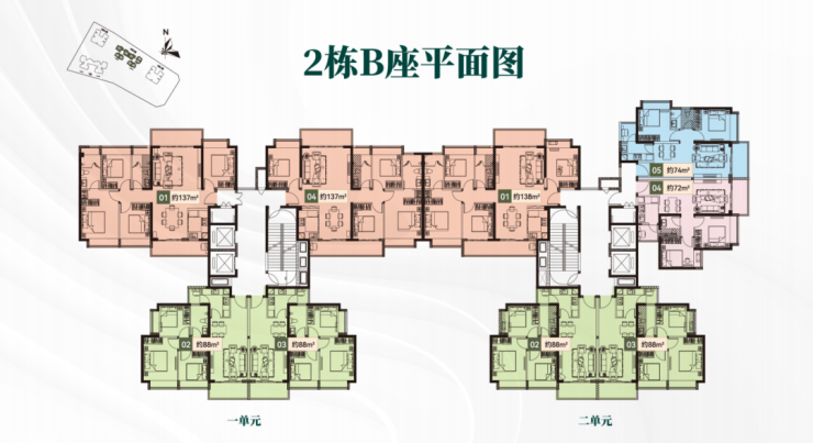 主推产品:约72-88-138m²二至四房产品