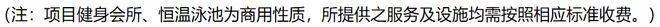 【高端会所 尊崇享受】引入约1500㎡融合健身、休闲、社交等功能的高端商业健身会所,配置高标准室内恒温泳池,缔造城芯尊崇生活。