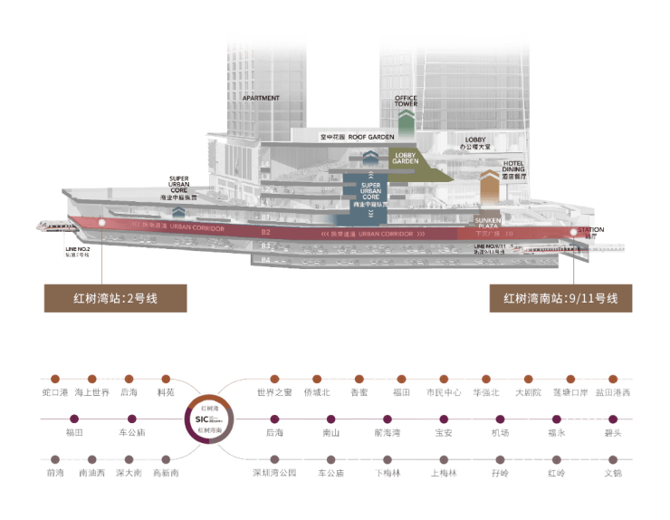 SIC是行业内少有的双地铁站接驳换乘上盖项目,是真正的TOD,目前已开通的地铁线包含2、9、11号线。项目将红树湾、红树湾南站换乘通道纳入整体设计之中,无需换乘即可直达罗湖中心区、福田中心区、车公庙、科技园、后海、前海、宝安中心区等核心商务区,以及宝安国际机场、深圳站、福田站、蛇口港等海陆空出境关口,实现多维业态高效通达,助力提升工作生活效率。深圳SIC深湾睿云中心售楼处咨询/预约热线:400-088-3336(营销中心)