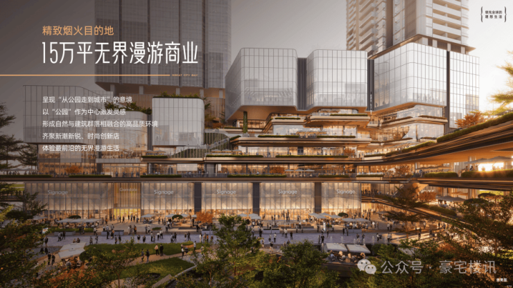 在环湾顶点之上高度聚合塔尖住宅、高端公寓、菁英学校、隐奢酒店、商务地标、绿地公园、漫调商业、文化艺术八大业态于一体,探索环湾都心、复合城市的未来生活巅峰实践。
