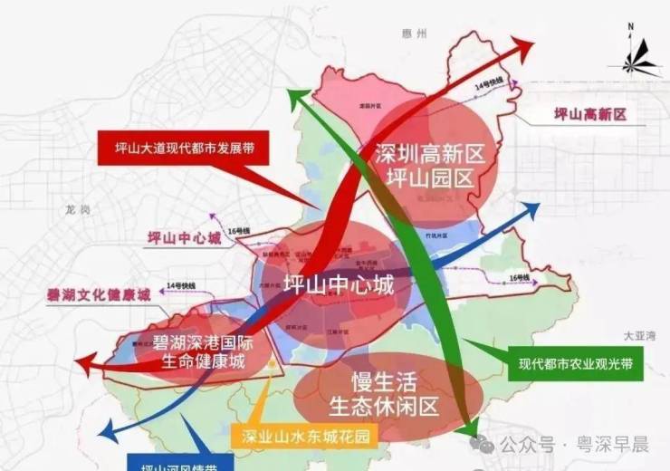 深业山水东城,位于坪山区碧岭街道锦龙大道和振碧路交汇处西南角,从板块来说可以说是属于锦龙片区,属于坪山门户位置,坪山自2017年成立至今,GDP增速多年位于深圳各行政区榜首。2024年更是达到9%,相比2016年坪山新区506亿元,目前已达1443亿。8年实现185%增长。