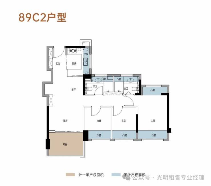 给空间以从容:约89-108㎡ 三至四房新规户型,高赠送率+高使用率