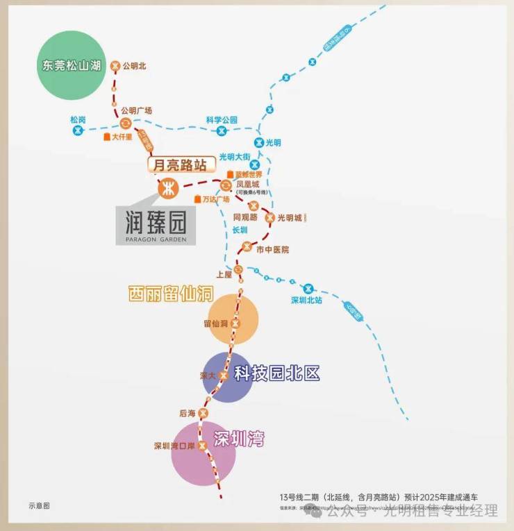 立体交通:轨道交通直线距离约600m到达地铁13号线月亮路站(建设中),1站凤凰城,9站到南山,2025年将推动13号线二期(北延)建成通车(信息来源:宝安日报)。项目近享3纵4横公路网,咫尺松白路/东明大道双城市干道,东明大道2025年已通车,从项目至凤凰城地铁站开车仅5分钟车程。
