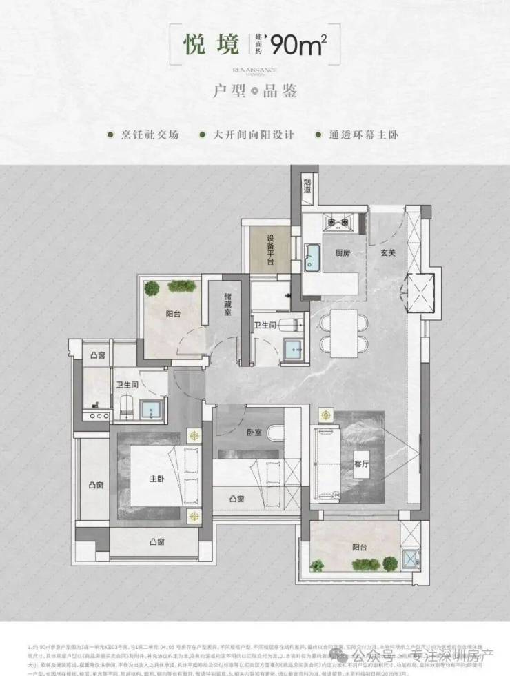 ①上车门槛最低的约90㎡,填补片区约90平三房空缺;