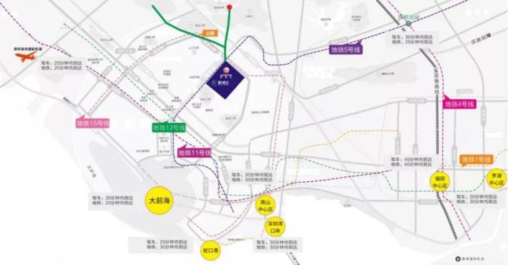 乘坐地铁,仅需5站、15分钟可直达前海;7站20分钟到深圳北站;3站10分钟到西丽高铁站;30分钟到达国际会展中心,均为直达无需换乘,直连深圳最具竞争力的核心商务圈。