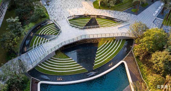 沿着潺潺流水的雨林桥进入小区,就能看到道路两侧点缀众多名贵植物,丰富的植物层次提供了多彩的景观视野,让你在家即可感受雨林风情。