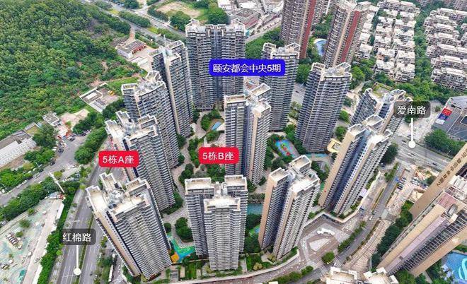 颐安都会中央5期,位于龙岗区龙城街道爱南路与红棉路交汇处,共由6栋13座住宅组成,总高28-30层,其中本次推出的5栋A/B座住宅30F。