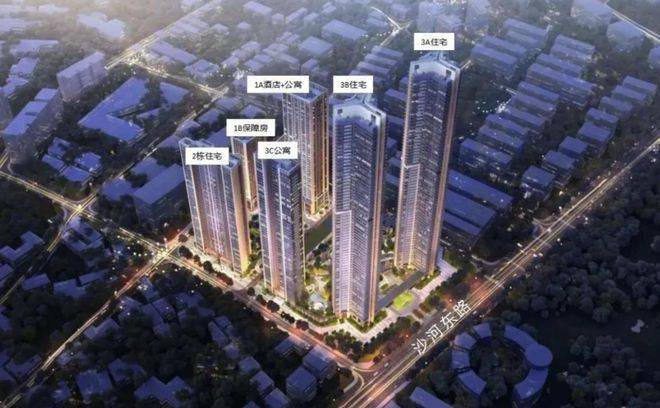 项目整体分两期开发建设。一期东地块:包含 1栋酒店+商务公寓、1栋保障房、2栋包含一、二单元的住宅;西地块包含2栋高约250米的超高层住宅,另有1栋约50层高的商务公寓包含。