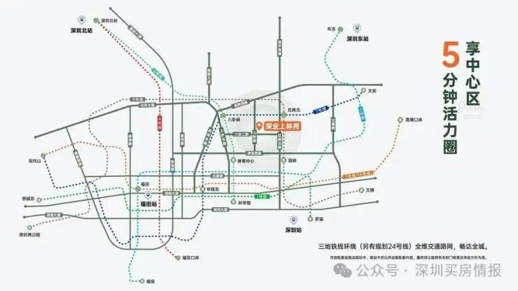 深业上林苑坐落于深圳福田区八卦岭,是城市发展的核心区域,处于金融贸 易、生态景观、居住生活三条主轴交汇处,是福田区未来新的增长点和创新支点。周边交通 网络发达,6/7/9号线地铁环绕,畅达全城,更有未来规划的24号线加持。多条主干道环 绕,与城市的各个重要区域紧密相连,无论是自驾出行还是乘坐公共交通工具,都能轻松畅 达。