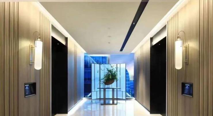 偏核心筒设计约70%使用率电梯厅自然采光 舒适候梯