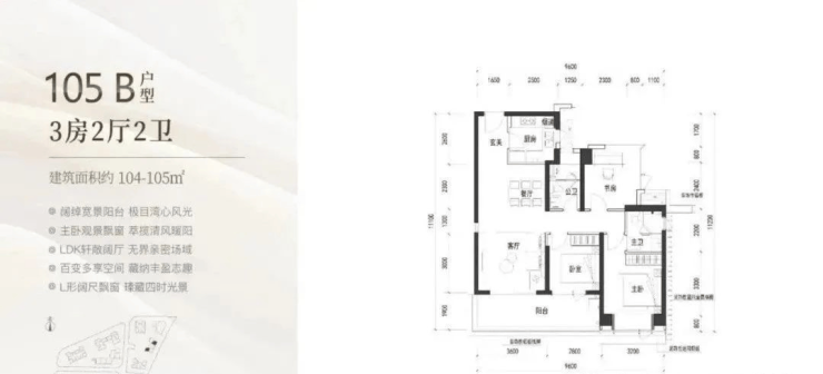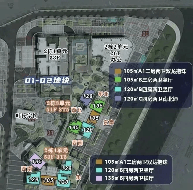 105㎡有两个户型,分别为A1双龙抱珠以及B户型传统竖厅