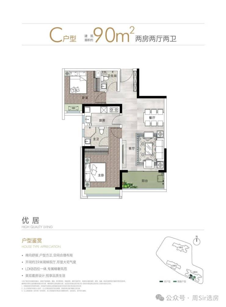 【建面约90㎡C户型】