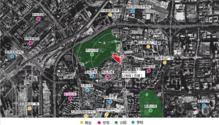 项目位于深圳市南山区中山公园东侧,东临南山大道与中国石化(南头加油站)、南临南头古城、西临中山公园、北临中山公园与深南燃气加气站。地理位置优越,环境优美。场地西侧与中山公园有4米高差,场地由东向西有缓坡。